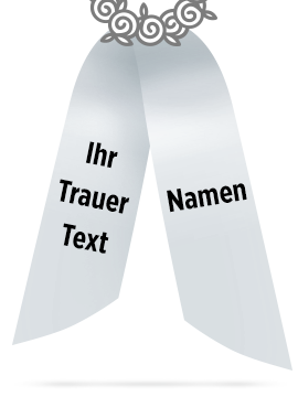 Trauergesteck in Rot-Weiß mit Rosen, Santini, Schleierkraut und Lilien. Als Beiwerk werden Pistazie, Aralie, Salal, Eukalyptus und Aspidistra verwendet.