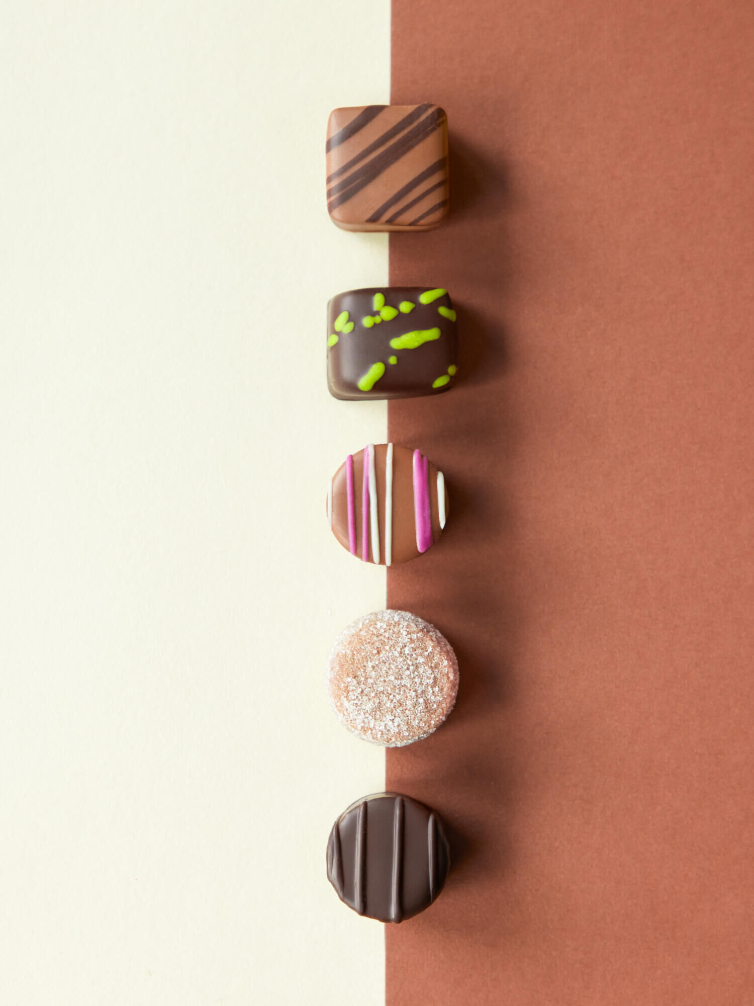 Fein, elegant und liebevoll gestaltet – perfekt als Ergänzung zu Blumen oder als kleines Geschenk für besondere Menschen. Jede Praline wird in Handarbeit gefertigt und vereint hochwertige Zutaten, harmonische Aromen und eine liebevolle, filigrane Optik. Die Kollektion beinhaltet fünf ausgewählte Sorten: