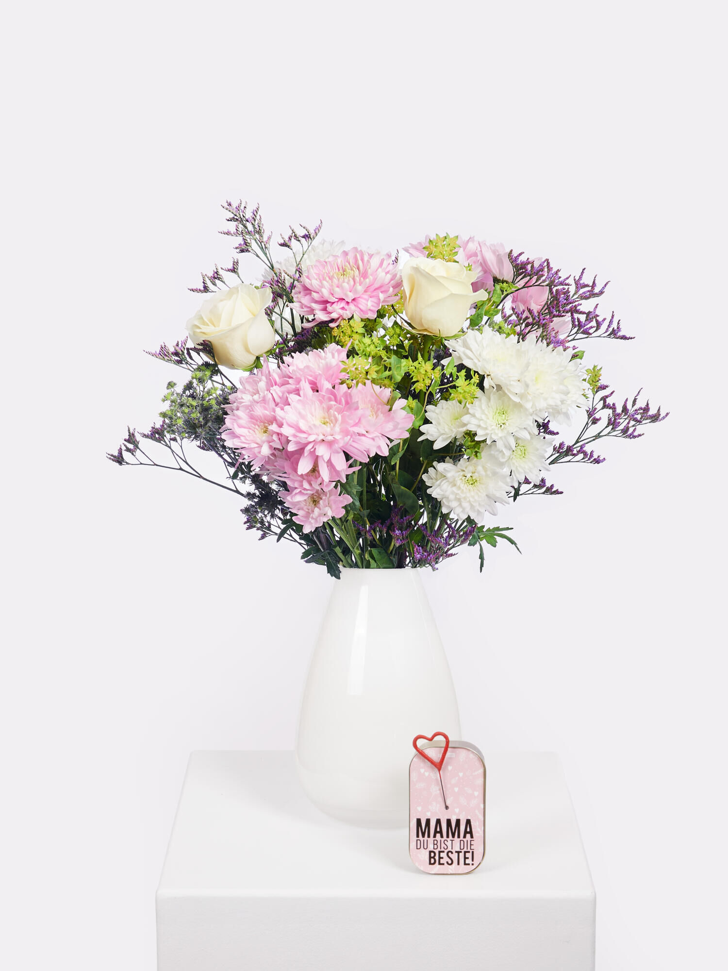 A thoughtful surprise for Mother’s Day: this mixed, long-lasting bouquet of chrysanthemums, roses and delicate greenery combines soft colours and elegant blooms.