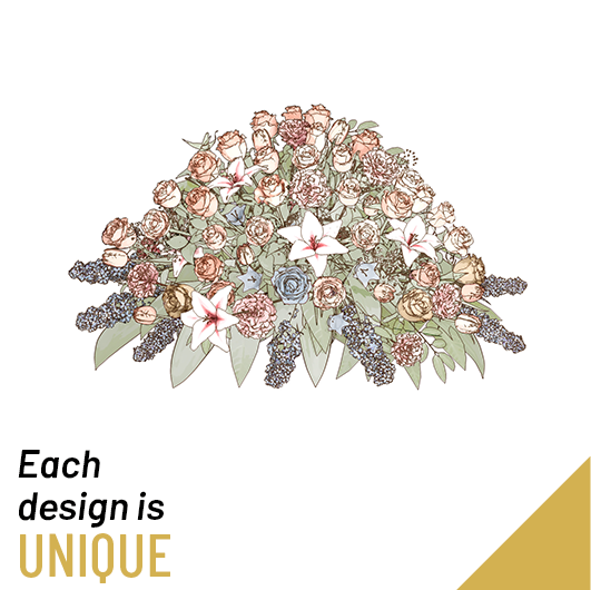 This casket spray inspires thoughts of comfort and peace to those wishing to pay their respects for the loss of the deceased.